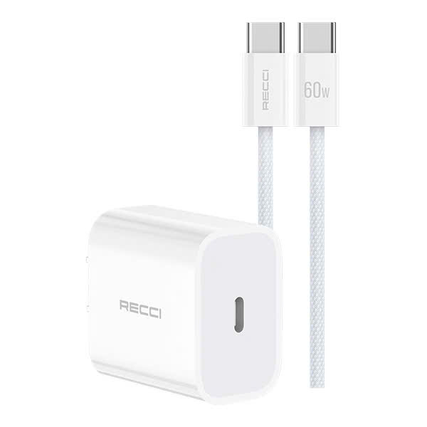 Recci RCK-22CC là một củ sạc nhanh kèm cáp của thương hiệu Recci – hỗ trợ sạc nhanh 20 W và thường đi kèm cáp Type-C để sạc thiết bị ngay khi mua.