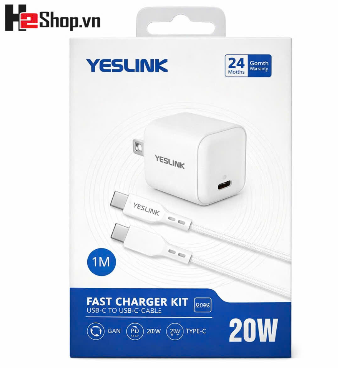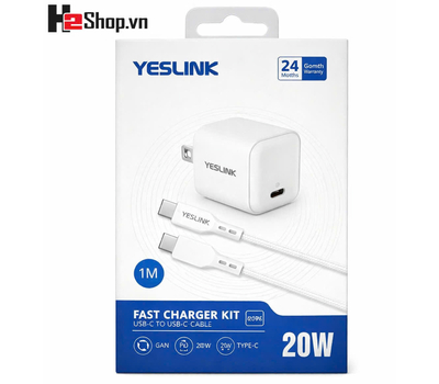 Bộ sạc nhanh Yeslink 20W là giải pháp sạc tiện lợi, bao gồm củ sạc USB-C công suất 20W và cáp Type-C to Type-C, phù hợp cho nhiều thiết bị hiện đại như điện thoại Android, iPad và laptop.