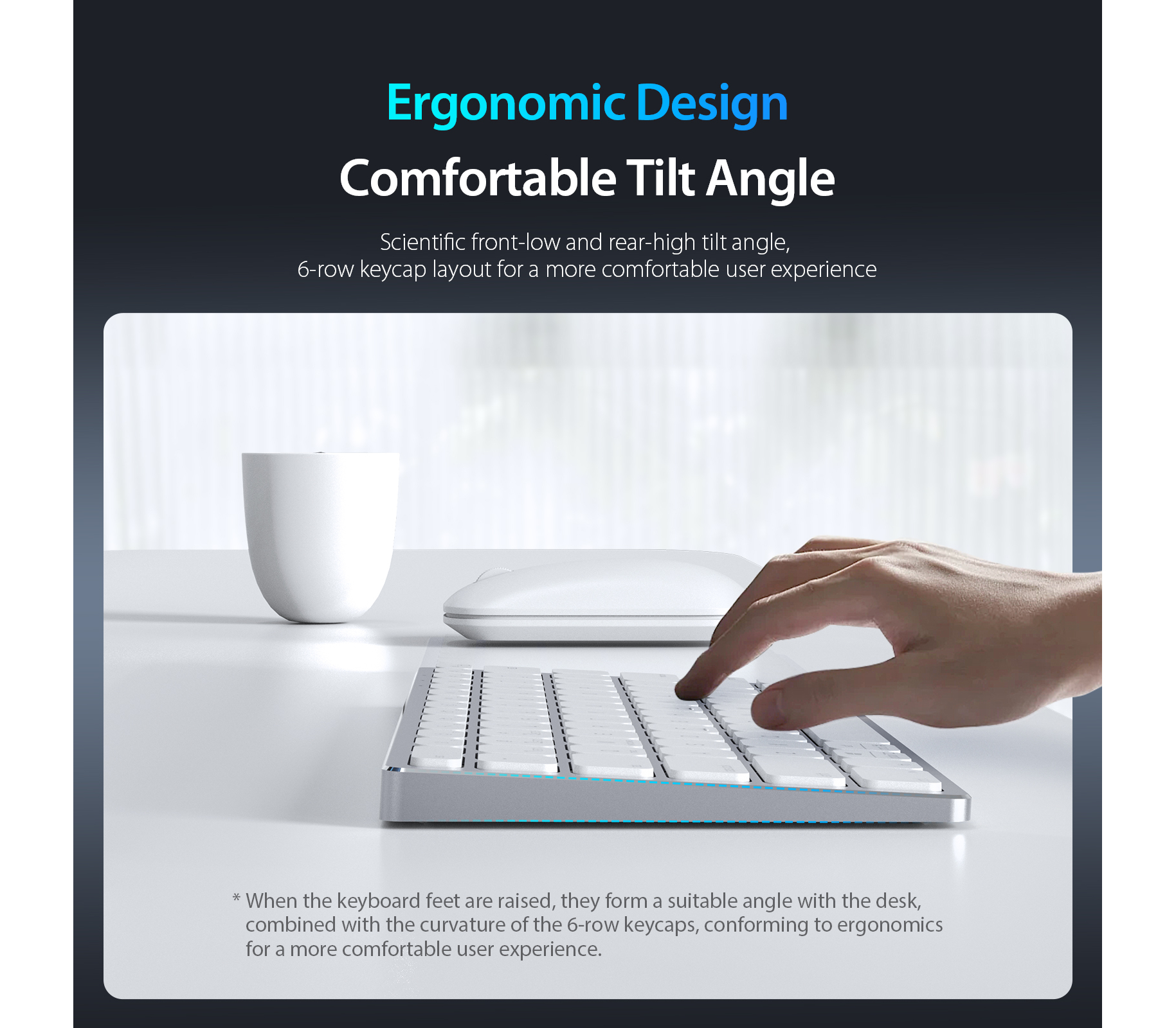 Thiết kế độ nghiêng khoa học cùng layout 6 hàng phím giúp thao tác thoải mái hơn khi làm việc trong thời gian dài