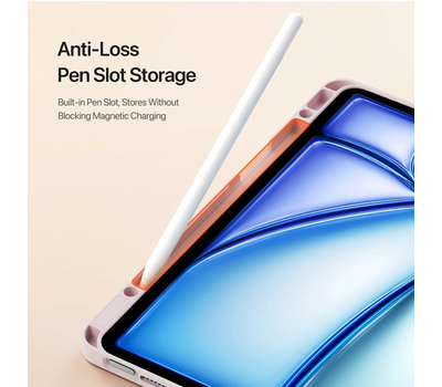 Sản phẩm tích hợp khe để Apple Pencil, hỗ trợ giữ bút gọn gàng mà không cản sạc từ tính (tùy dòng), đồng thời có Auto Sleep/Wake tự động tắt mở màn hình khi đóng mở nắp.