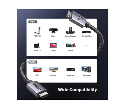 Cáp HDMI 2.1 độ phân giải cao UGREEN 8K 60Hz, tương thích với nhiều thiết bị