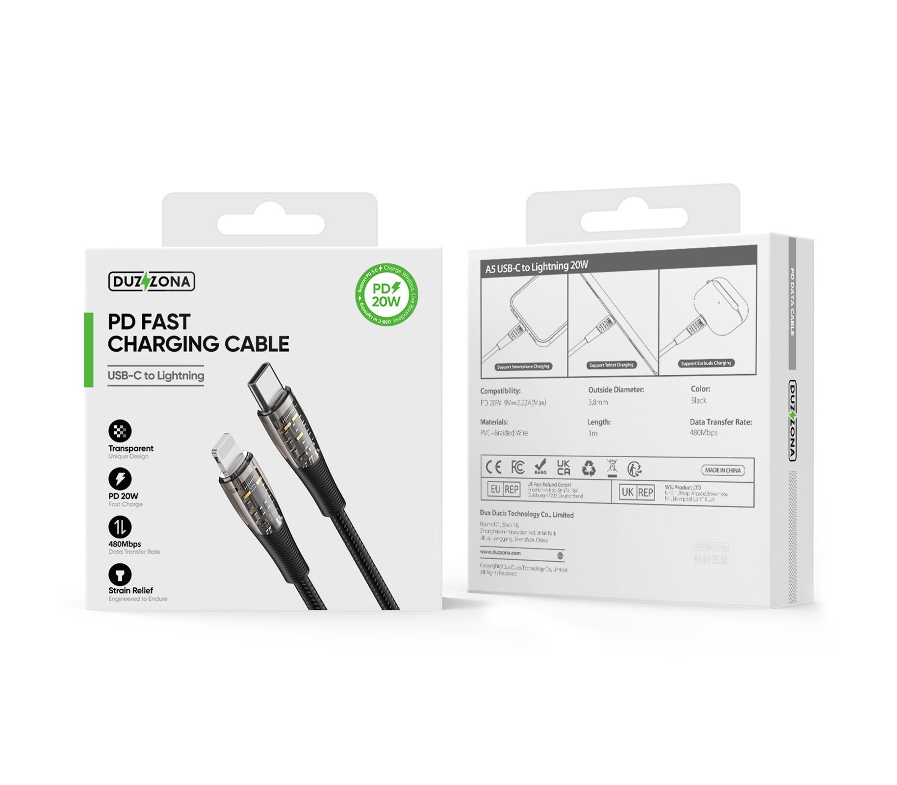 Cáp sạc nhanh Duzzona A5 là dòng cáp sạc và truyền dữ liệu chất lượng cao, được thiết kế dành cho các thiết bị Apple sử dụng cổng Lightning. Sản phẩm hỗ trợ sạc nhanh chuẩn Power Delivery (PD), giúp sạc pin nhanh, ổn định và an toàn cho thiết bị.