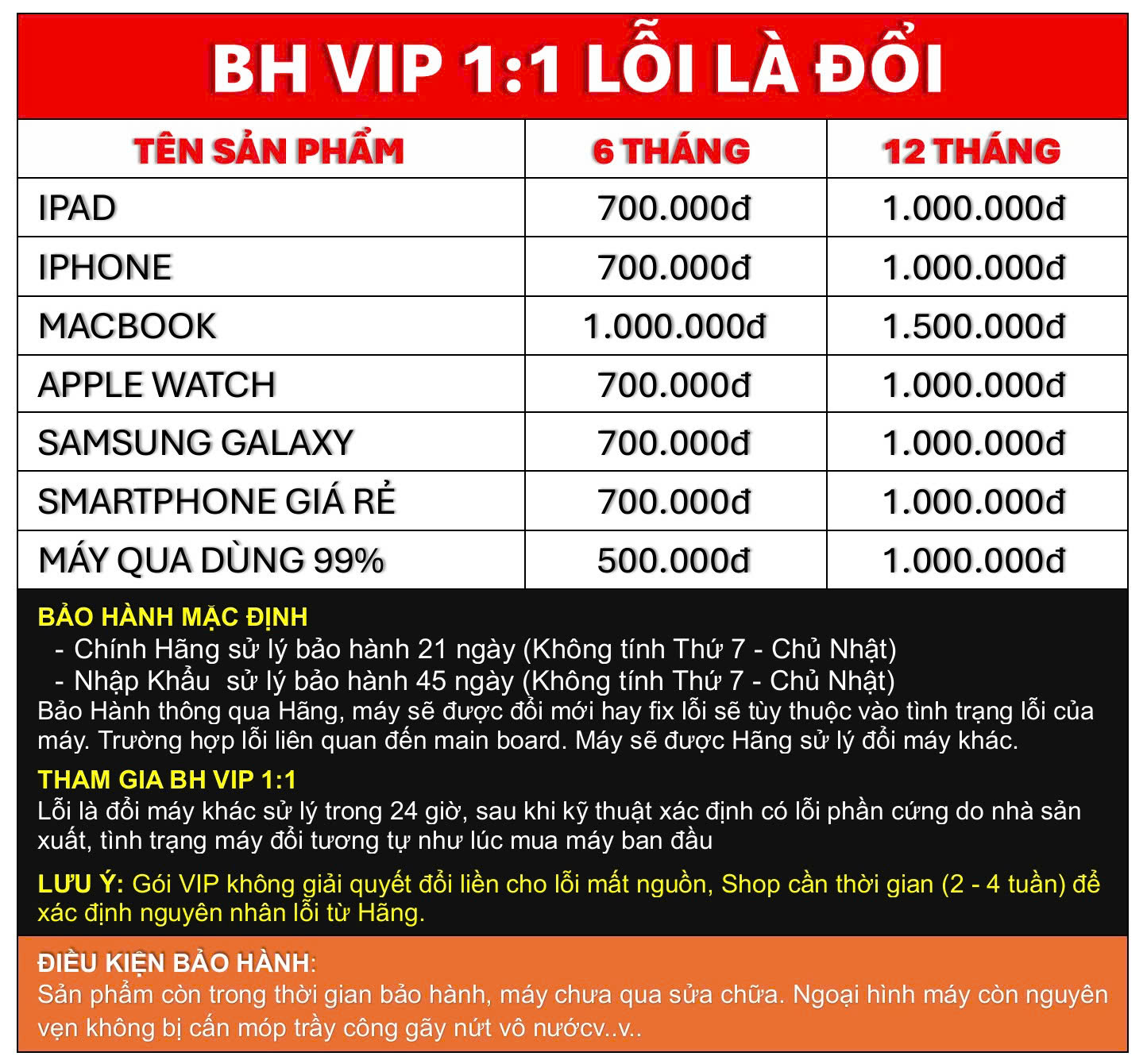 THAM GIA GÓI BẢO HÀNH VIP 1:1 – NHẬN NGAY DỊCH VỤ TỐT NHẤT!