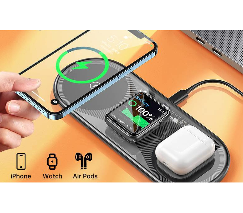 Tích hợp giá đỡ cho Apple Watch, hỗ trợ sạc cùng lúc 3 thiết bị như iphone, tai nghe và đồng hồ của Apple