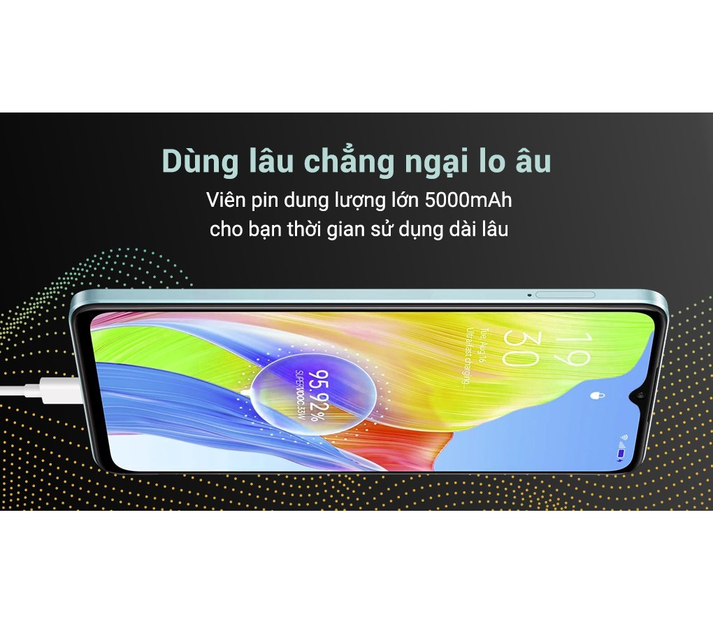 OPPO A18 hỗ trợ công suất sạc thấp 10 W, không chỉ đảm bảo sạc an toàn cho pin mà còn giúp bảo vệ thiết bị khỏi quá nhiệt. Mặc dù công suất sạc không cao, nhưng điều này có lợi ích làm giảm áp lực lên pin và kéo dài tuổi thọ của pin. Hơn nữa, công suất sạc thấp cũng giúp giảm thiểu tình trạng sạc quá nhanh và đảm bảo rằng pin sẽ luôn được sạc một cách an toàn.