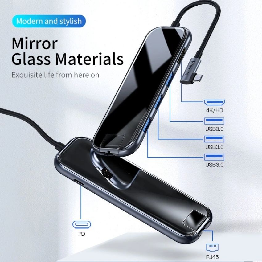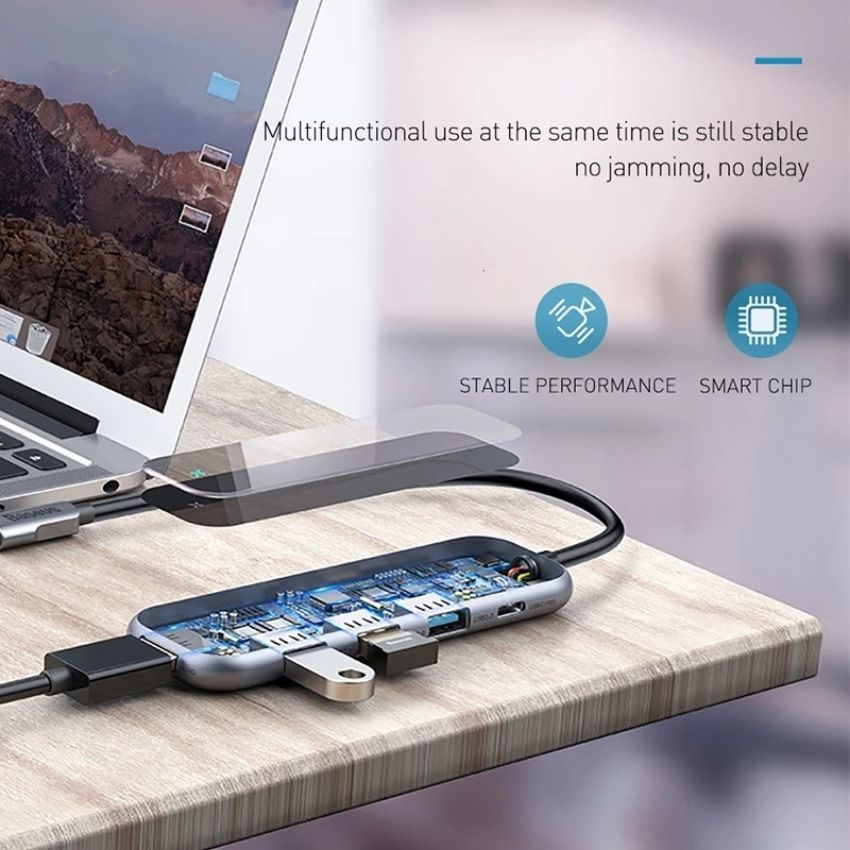 Hình ảnh chi tiết sản phẩm HUB chuyển đổi chia cổng đa năng 6 trong 1 Baseus Superlative Multifuntional HUB 6 in 1 Docking station CAHUB-DZ0G (Type-C to 3xUSB3.0 +HDMI +RJ45 +PD)