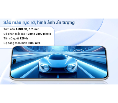 HONOR 400 Pro được trang bị màn hình AMOLED 6.7 inch siêu sáng, với độ sáng tối đa lên đến 5000 nits, giúp hiển thị rõ nét ngay cả dưới ánh nắng gắt. Độ phân giải 1280 x 2800 pixels, tần số quét 120 Hz, gam màu rộng DCI-P3 và khả năng hiển thị 1.07 tỉ màu mang đến trải nghiệm hình ảnh sống động, sắc nét và mượt mà chuẩn điện ảnh.