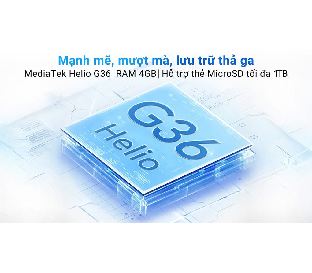 Máy được trang bị RAM 4 GB, hỗ trợ mở rộng thêm 4 GB RAM Turbo, giúp cải thiện hiệu suất đa nhiệm, cho phép người dùng chuyển đổi linh hoạt giữa các ứng dụng mà không lo bị giật lag. Bộ nhớ trong 128 GB mang đến không gian lưu trữ thoải mái và còn hỗ trợ thẻ nhớ MicroSD lên đến 1 TB, giúp lưu trữ dữ liệu mà không lo hết dung lượng.