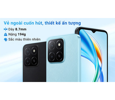 HONOR X5b Plus sở hữu thiết kế nguyên khối với chất liệu khung và mặt lưng nhựa, mang lại cảm giác chắc chắn nhưng vẫn đảm bảo sự nhẹ nhàng khi cầm nắm. Với kích thước gọn gàng dày 8.7 mm và nặng 194g, chiếc điện thoại này rất phù hợp để sử dụng lâu dài mà không gây mỏi tay.