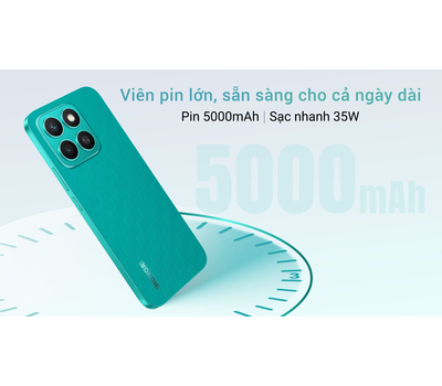 HONOR X8c sở hữu viên pin 5000 mAh, đảm bảo thời gian sử dụng thoải mái suốt cả ngày, dù bạn làm việc, giải trí hay lướt web liên tục. Khi cần nạp năng lượng, công nghệ sạc nhanh 35W giúp rút ngắn thời gian chờ, sạc nhanh hơn, dùng lâu hơn.