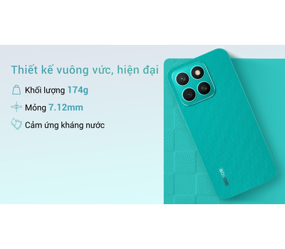 Chiếc điện thoại HONOR này gây ấn tượng với thiết kế vuông vức, sang trọng và cảm giác cầm nắm chắc chắn. Mặt lưng nhựa nhám cao cấp không chỉ giúp chống bám vân tay mà còn giữ máy luôn sạch sẽ. Cụm camera sau hình vuông độc đáo tạo điểm nhấn cá tính, trong khi logo "HONOR" được đặt tinh tế ở góc dưới, thể hiện sự chỉn chu trong từng chi tiết.