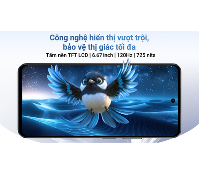 Bên cạnh đó, độ sáng 725 nits giúp màn hình hiển thị rõ nét dưới ánh sáng mạnh, trong khi kính cường lực Panda bảo vệ tốt. Dù dùng tấm nền TFT LCD tiết kiệm, realme C71 vẫn cân bằng với tần số quét cao và độ sáng ấn tượng, mang lại hình ảnh sống động, phù hợp cho giải trí và công việc hàng ngày.