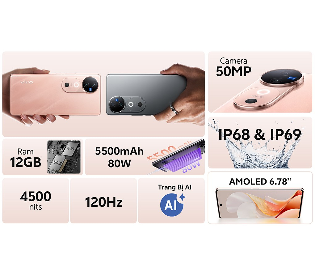 vivo V40 5G được chế tác để vượt qua các thử thách với khả năng kháng bụi và nước đạt chuẩn IP68 và IP69. Máy có thể chịu được ngâm trong nước ngọt ở độ sâu 1.5m trong 30 phút mà không bị hư hại (theo công bố của hãng), mang đến sự an tâm khi sử dụng trong mưa hoặc khi vô tình làm rơi.