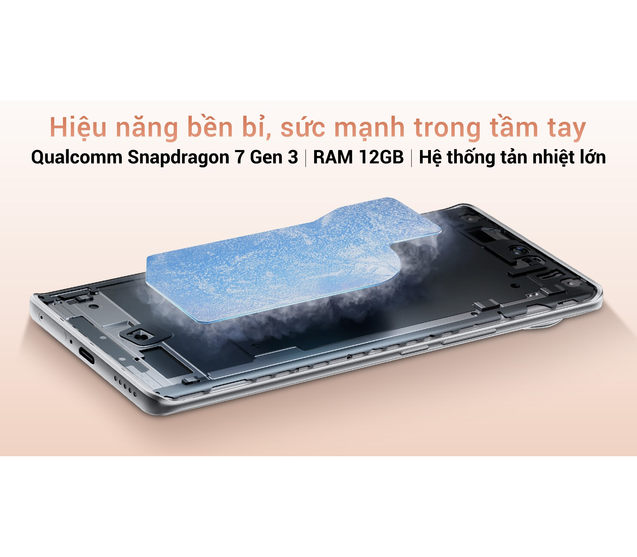 Nhằm mang lại trải nghiệm mượt mà cho người dùng, vivo đã tích hợp hệ thống tản nhiệt VC tiên tiến vào V40 5G. Với diện tích tiếp xúc lớn, hệ thống này có khả năng làm mát hiệu quả, giúp thiết bị duy trì hiệu suất ổn định trong thời gian dài, đặc biệt là khi xử lý các tác vụ đòi hỏi hiệu năng cao.