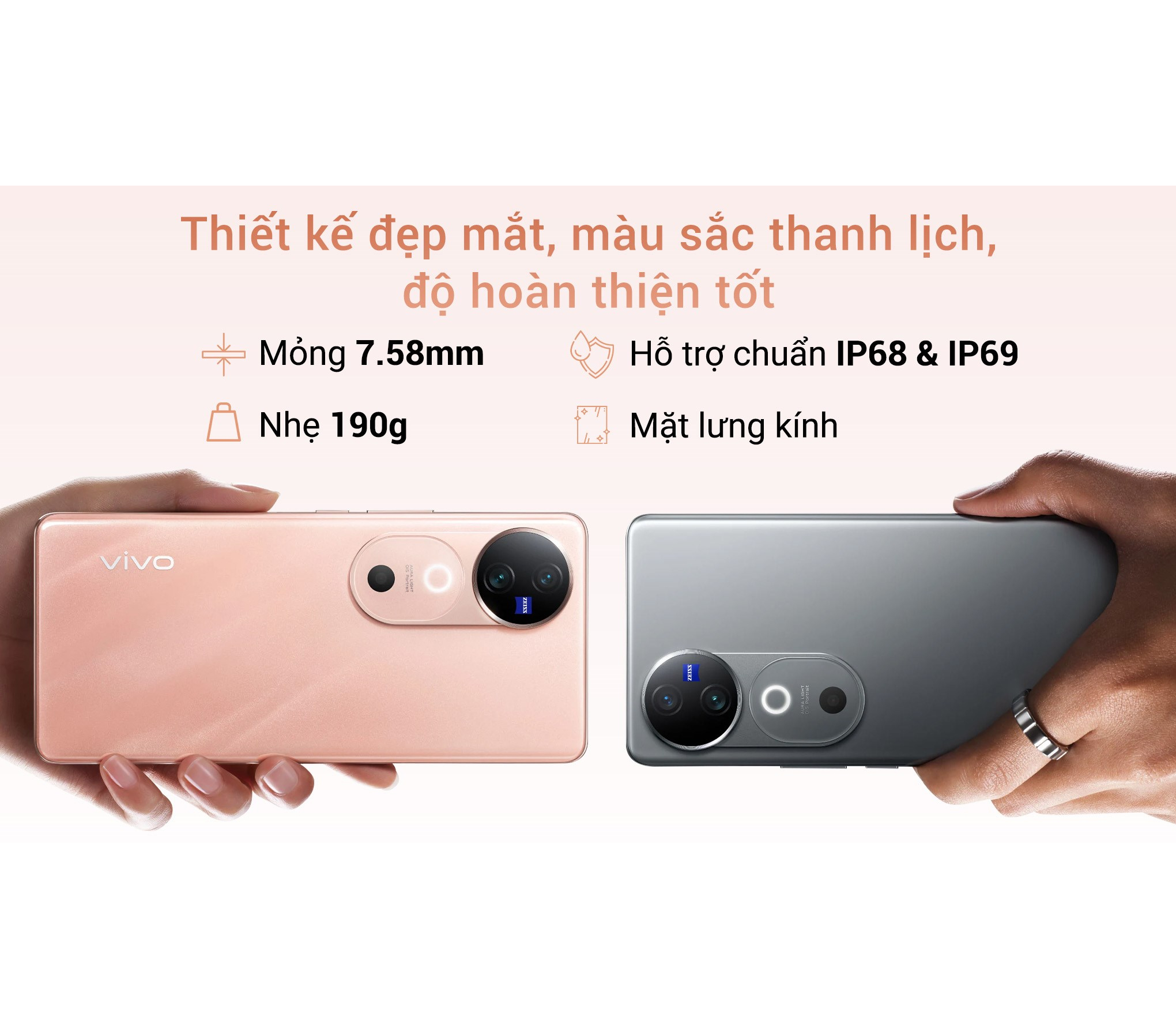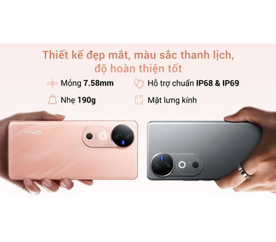vivo V40 5G có độ dày chỉ 7.58 mm và khối lượng 190g, mang lại cảm giác cầm nắm nhẹ nhàng và thoải mái. Thiết kế mỏng gọn giúp người dùng dễ dàng thao tác và sử dụng trong suốt cả ngày mà không cảm thấy mỏi tay, dù là khi cầm điện thoại lâu hay di chuyển trong nhiều hoàn cảnh khác nhau.
