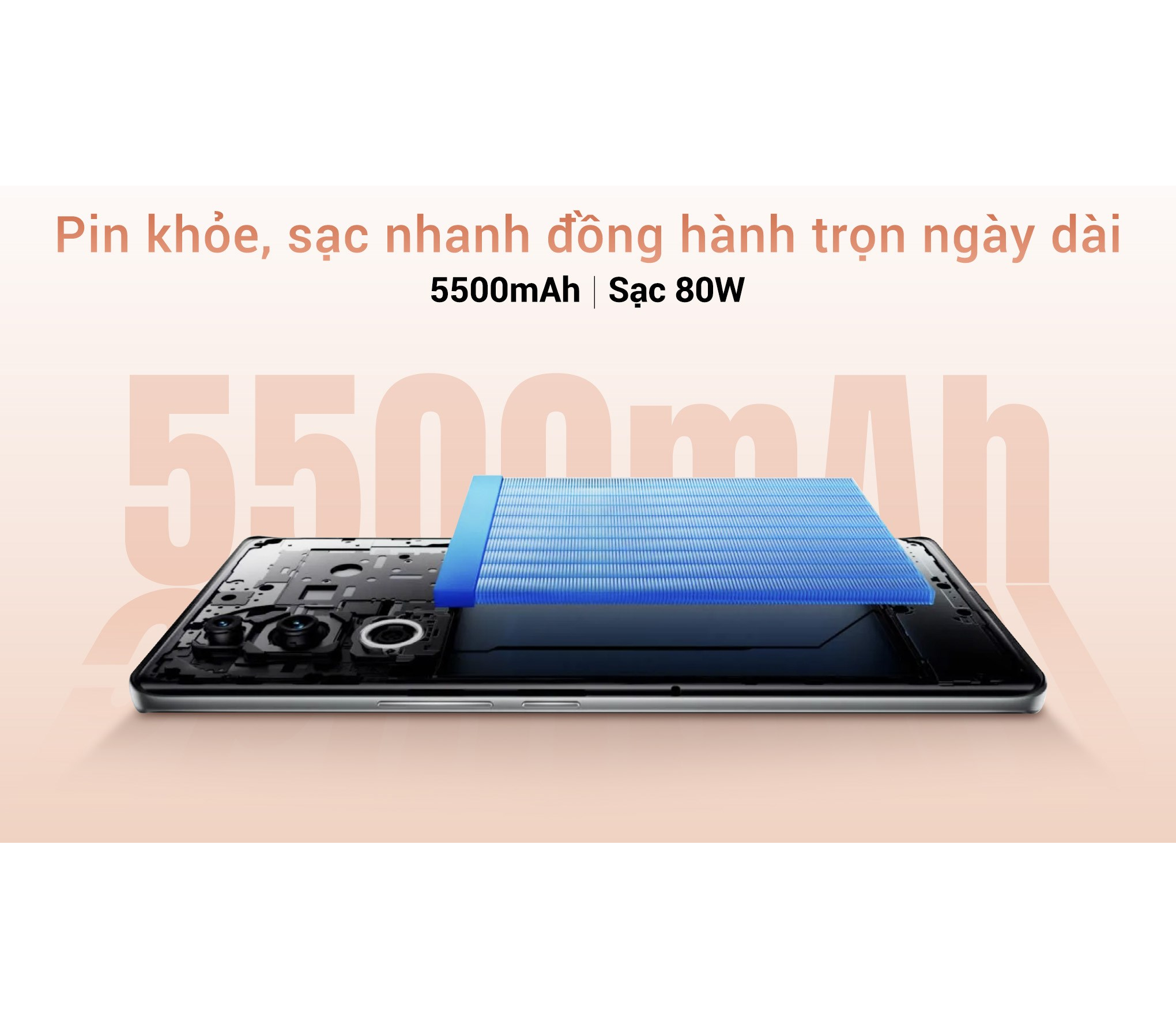 vivo V40 5G trang bị viên pin 5500 mAh, mang đến thời gian sử dụng kéo dài suốt cả ngày, đáp ứng nhu cầu làm việc, học tập và giải trí. Kết hợp với công nghệ sạc nhanh 80W, điện thoại có thể nạp đầy pin trong thời gian ngắn, giúp bạn tiết kiệm thời gian và tiếp tục sử dụng mà không gián đoạn.