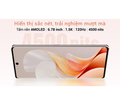 Màn hình của vivo V40 5G nổi bật với độ sáng tối đa lên đến 4500 nits, đảm bảo hiển thị rõ ràng dưới ánh sáng mặt trời. Công nghệ màn hình còn tích hợp các chứng nhận ánh sáng xanh thấp, độ nhấp nháy thấp và giảm nhòe chuyển động, bảo vệ mắt bạn khi sử dụng lâu dài.