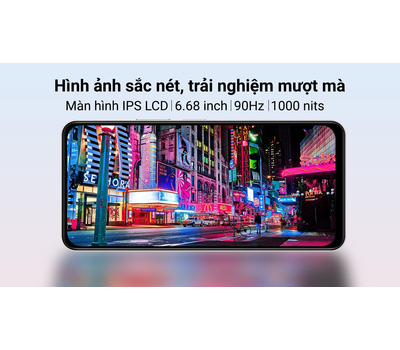 Màn hình Dotch Display 6.68 inch mang đến trải nghiệm sống động, sắc nét với khả năng cuộn lướt mượt mà nhờ tần số quét 90 Hz. Độ sáng tối đa 1000 nits giúp hiển thị rõ ràng ngay cả dưới ánh nắng, cho phép người dùng sử dụng thiết bị mọi lúc, mọi nơi.