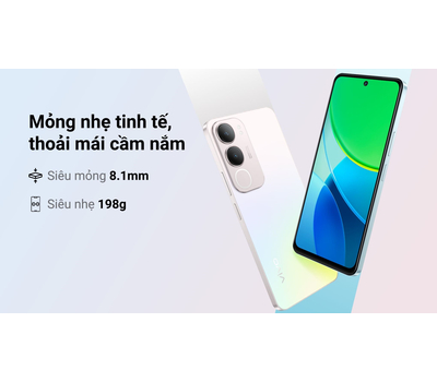 vivo Y19s Pro gây ấn tượng mạnh mẽ với thiết kế sang trọng, tinh tế, có sẵn hai tùy chọn màu sắc cá tính: đen và bạc. Dù tích hợp viên pin dung lượng lớn, thiết bị vẫn đạt độ mỏng ấn tượng chỉ 8.1 mm, mang lại vẻ ngoài thanh lịch cùng trải nghiệm cầm nắm nhẹ nhàng, thoải mái. Khung viền phẳng 2.5D hiện đại không chỉ nâng tầm thẩm mỹ mà còn tối ưu hóa cảm giác sử dụng.