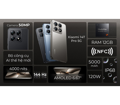 Điện Thoại Xiaomi 14T Pro 5G 12GB 256GB (6.67 inch) - Hàng Công Ty - Nguyên Seal Box