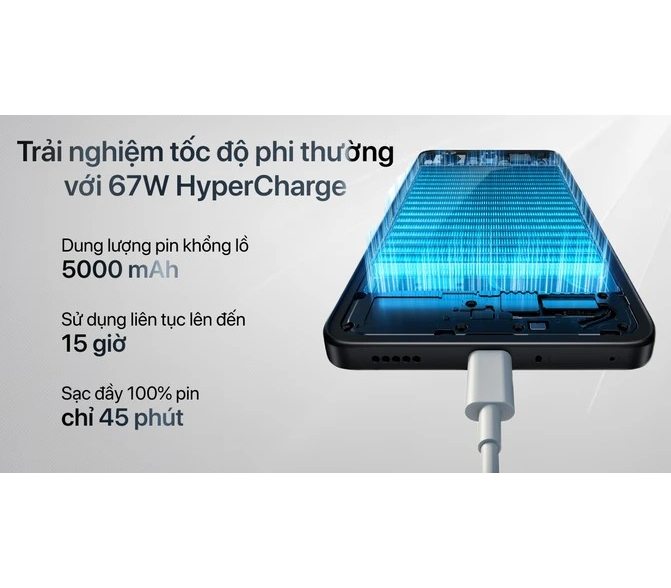 Công nghệ sạc nhanh 67W HyperCharge trên Xiaomi 14T sẽ giúp bạn tiết kiệm thời gian đáng kể. Chỉ trong 45 phút, viên pin của máy sẽ được sạc đầy 100% (theo hãng công bố). Điều này mang đến sự tiện lợi tối đa cho người dùng, giúp bạn luôn kết nối và sẵn sàng cho mọi hoạt động.