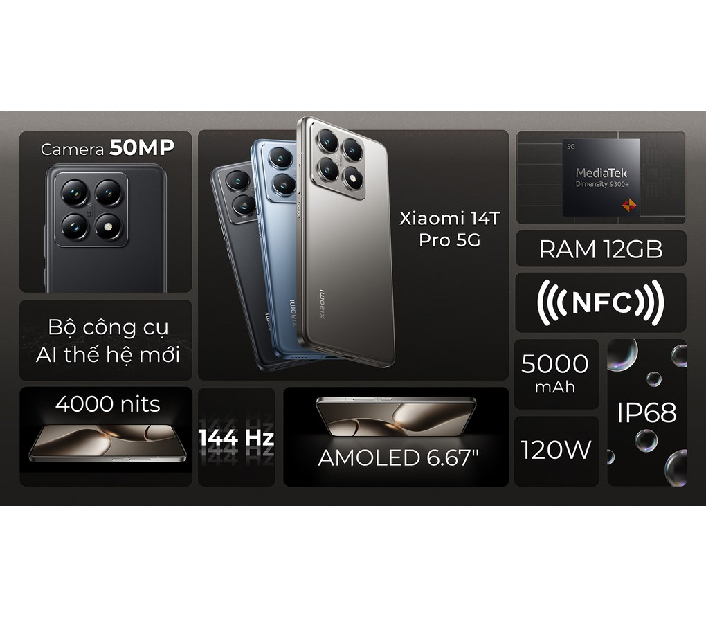 Điện Thoại Xiaomi 14T Pro (5G) 12GB 512GB (6.67 inch) - Hàng Công Ty - Nguyên Seal Box