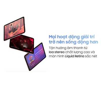 Bên cạnh đó, bộ xử lý đồ hoạ GPU 4 lõi mang lại hiệu suất tối đa, nhanh hơn 30% so với thế hệ trước hứa hẹn iPad Air có thể chơi các trò chơi phức tạp đòi hỏi độ phân giải cao, video 4K,...