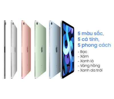 iPad Air 2020 được thiết kế nguyên khối đẳng cấp cùng nhiều màu sắc trẻ trung cho bạn có nhiều sự lựa chọn hơn như: bạc, xám, vàng hồng, xanh lá và xanh dương.
