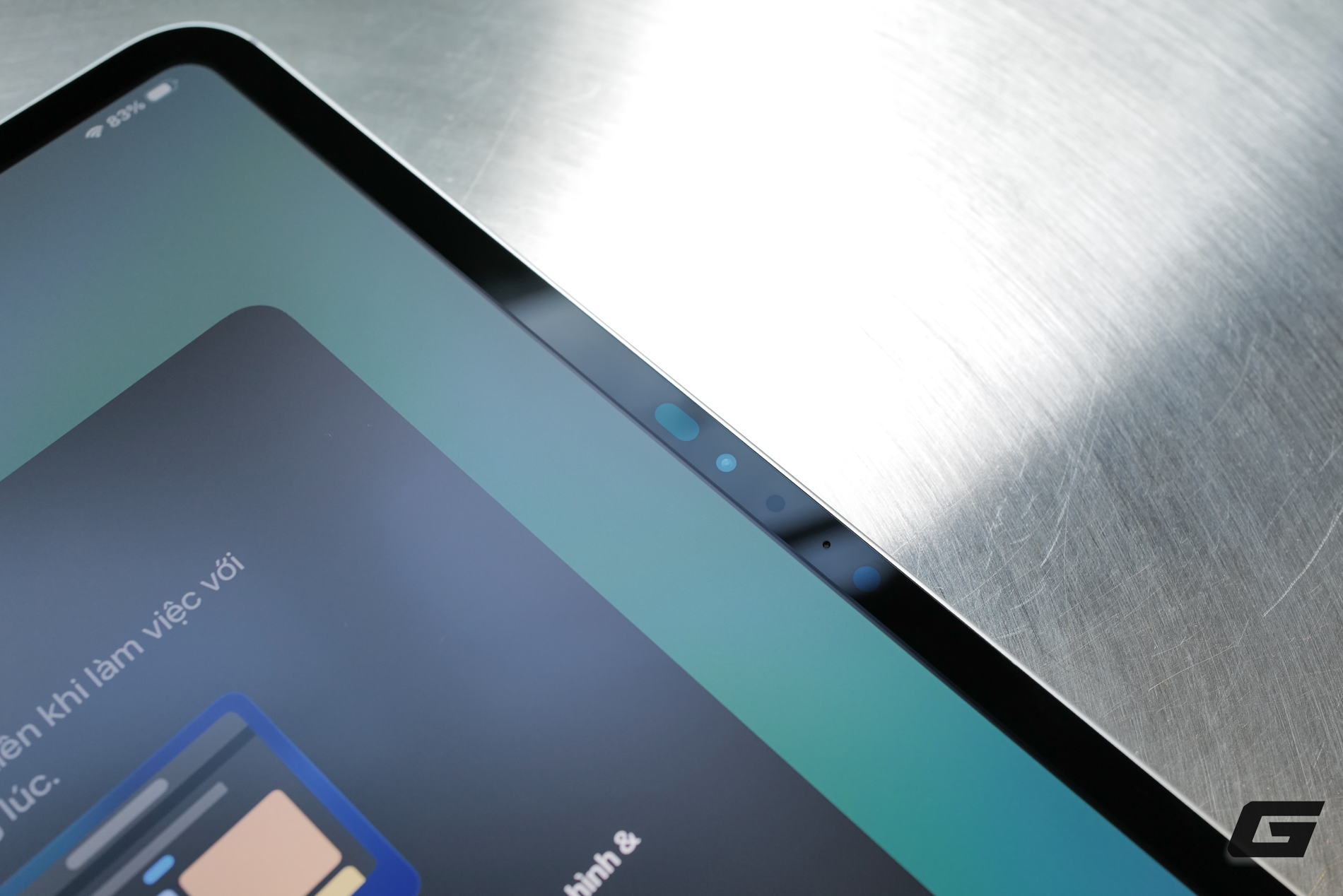 Camera trước 12MP hỗ trợ Center Stage được đặt ở cạnh ngang, phù hợp hơn với thói quen sử dụng iPad theo chiều landscape khi gọi video, họp trực tuyến hay dùng cùng bàn phím gắn ngoài.
