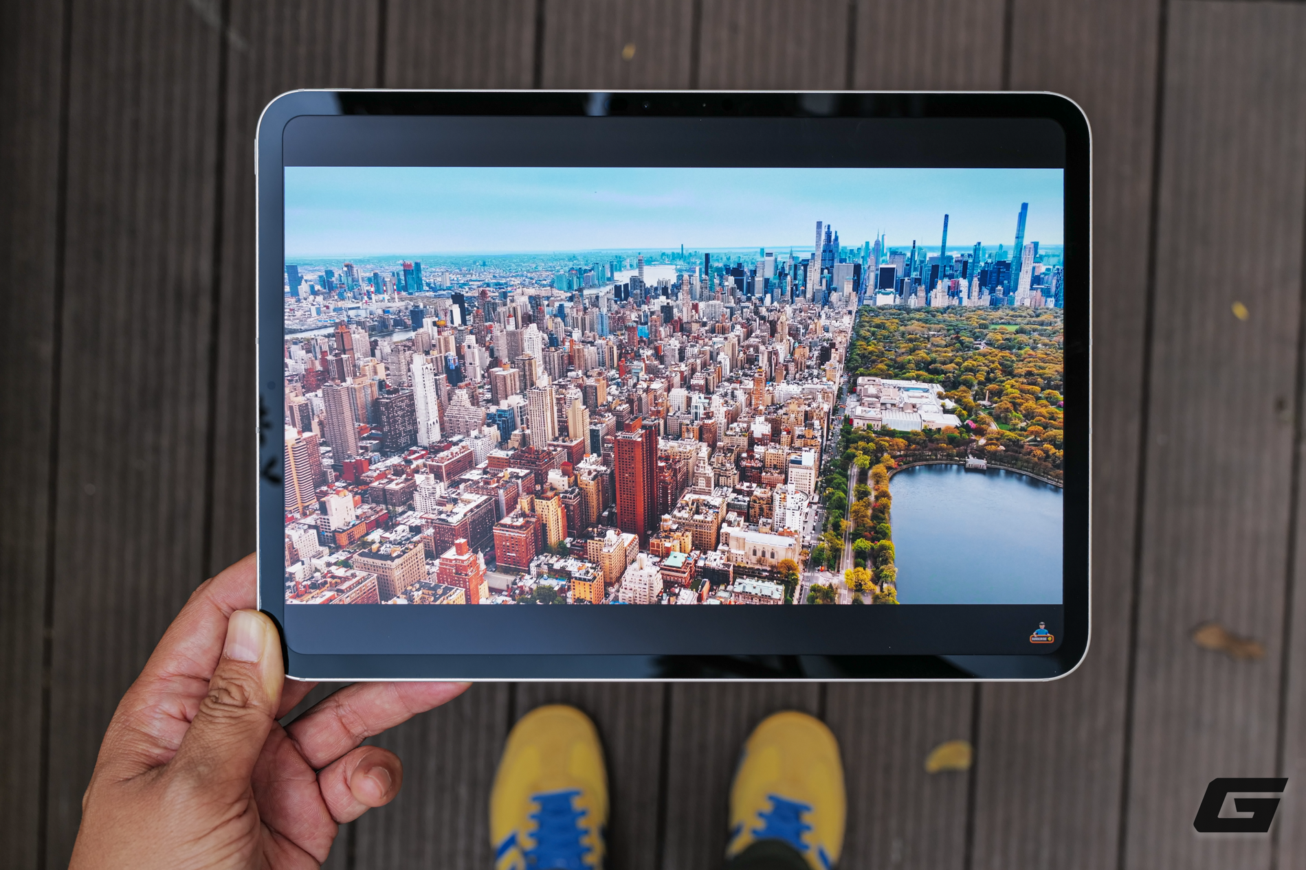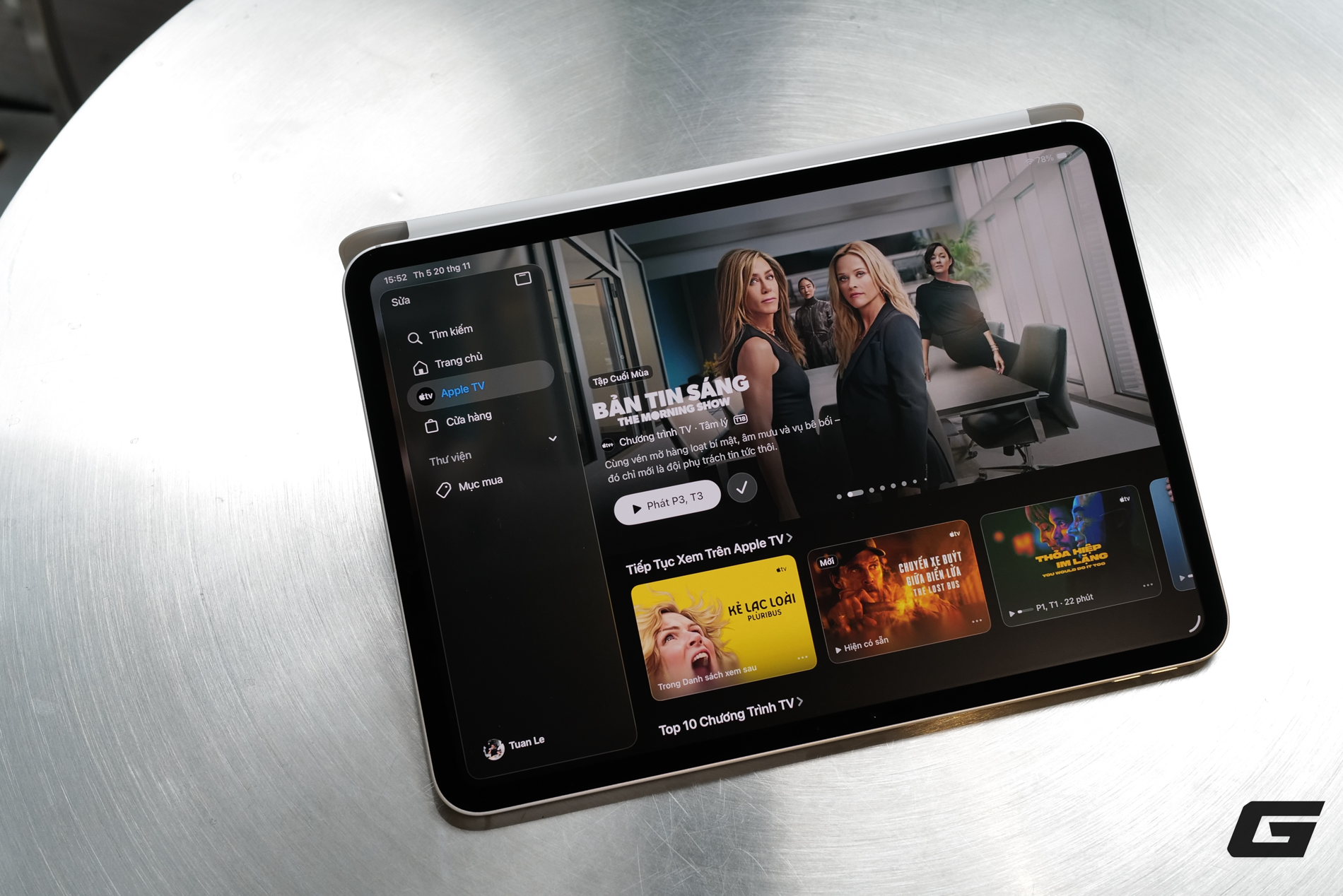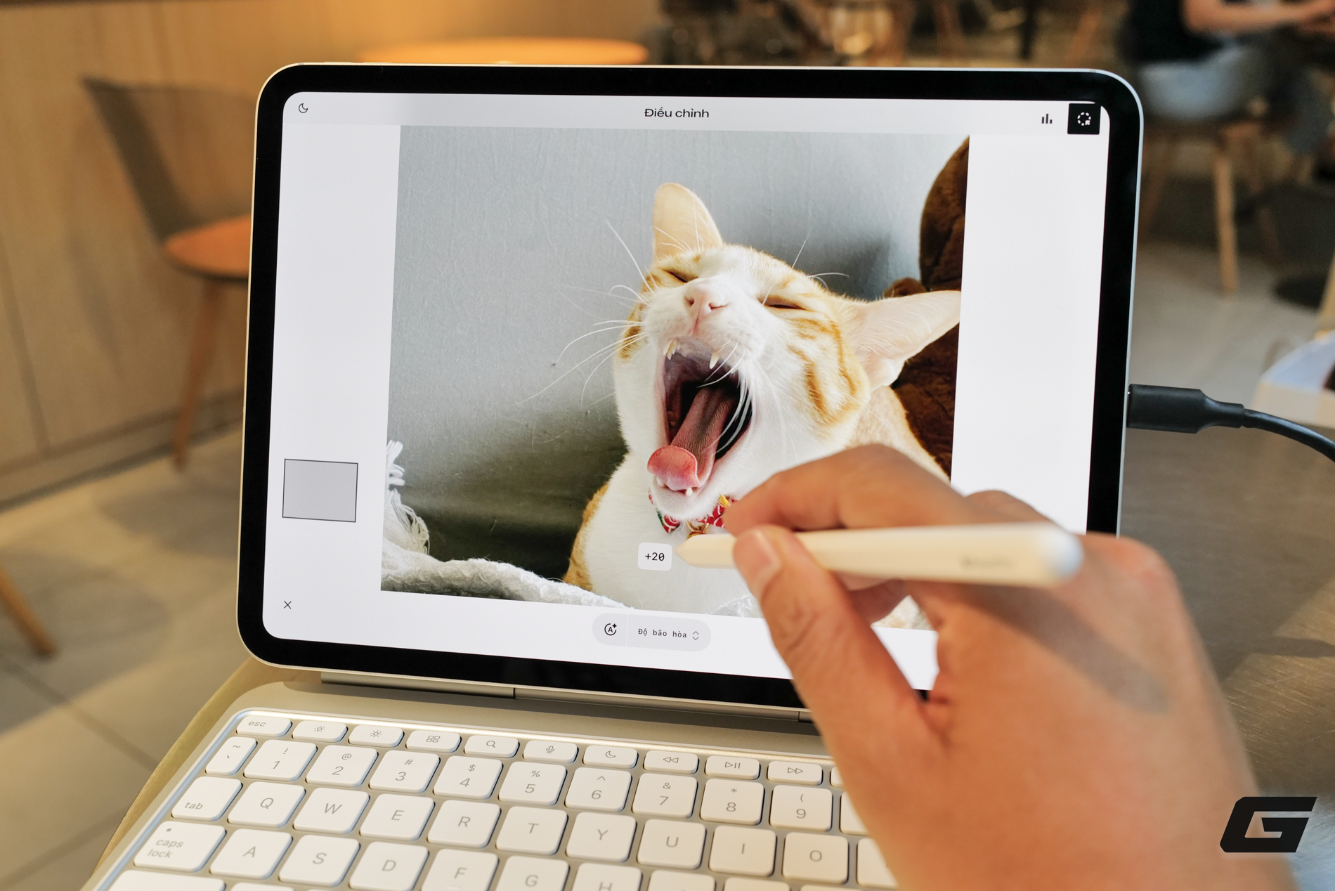 Về khả năng hiển thị, tùy chọn màn hình Nano-texture là một điểm sáng. Với bức ảnh này, tôi đang cầm iPad Pro M5 ngoài trời và hướng màn hình thẳng lên, hứng trọn ánh sáng nhưng vẫn không bị chói. Nếu nhìn vào viền ngoài, bạn sẽ thấy những hình ảnh bị phản chiếu lại, tuy nhiên nội dung hiển thị bên trong màn hình Nano-texture lại rõ nét và không gặp vấn đề gì.