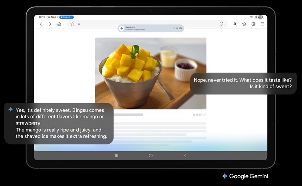 Galaxy Tab S11 5G mở ra trải nghiệm hoàn toàn mới với Galaxy AI, mang đến sự hỗ trợ linh hoạt trong từng tình huống. Với Gemini Live, bạn có thể chia sẻ màn hình và nhận thông tin theo thời gian thực, trò chuyện tự nhiên như với một người đồng hành thực thụ.