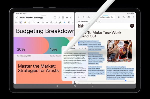 Không dừng lại ở đó, Trợ lý Viết thông minh còn giúp tinh chỉnh câu chữ, gợi ý văn phong và giọng điệu để nội dung trở nên súc tích và chuyên nghiệp hơn. Nhờ Galaxy AI, Galaxy Tab S11 5G trở thành công cụ tối ưu để bạn học tập, làm việc và sáng tạo mỗi ngày.