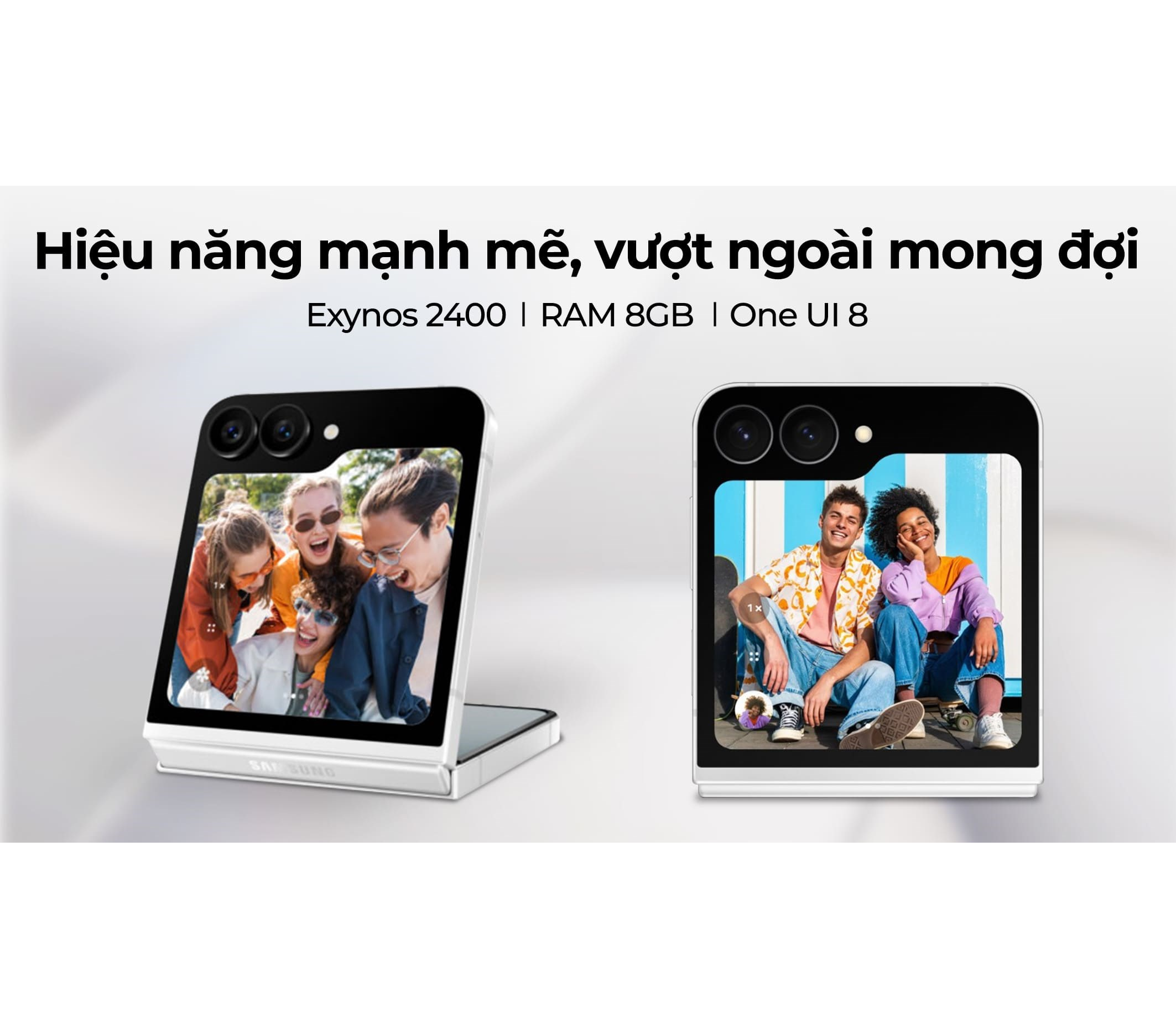 Đặc biệt, khi kết hợp với chế độ gập 90 độ Flex Mode, Flip 7 FE sẽ trở thành một công cụ hữu ích cho việc chụp ảnh nhóm hoặc time-lapse. Bạn có thể đặt máy lên bàn, tạo các góc chụp thấp độc đáo và thoải mái tạo dáng tự nhiên.