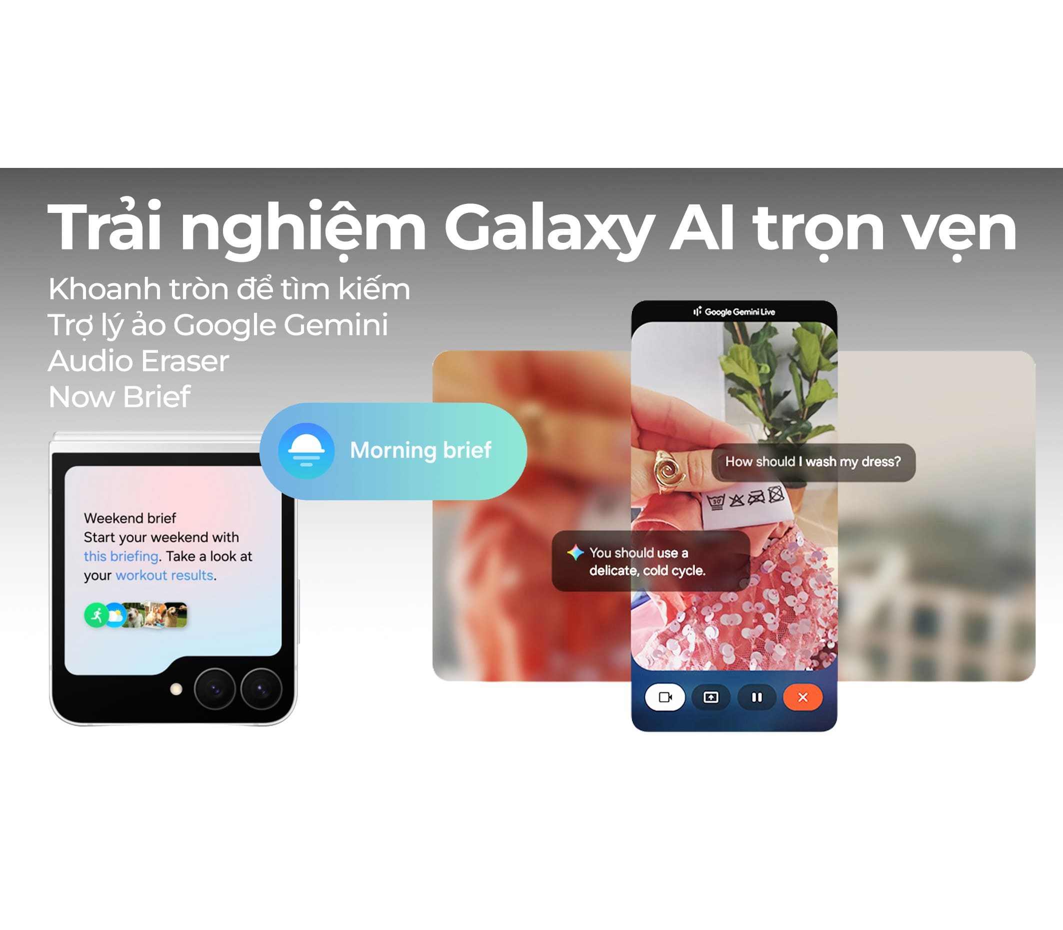 Đây chính là nhóm tính năng nổi bật của Flip7 FE so với các mẫu Z Flip cũ. Em nó được trang bị đầy đủ các tính năng trợ lý thông minh Galaxy AI mới nhất, giúp bạn nâng cao trải nghiệm trong cuộc sống lẫn công việc. Cùng xem một số ứng dụng thực tế nhé: