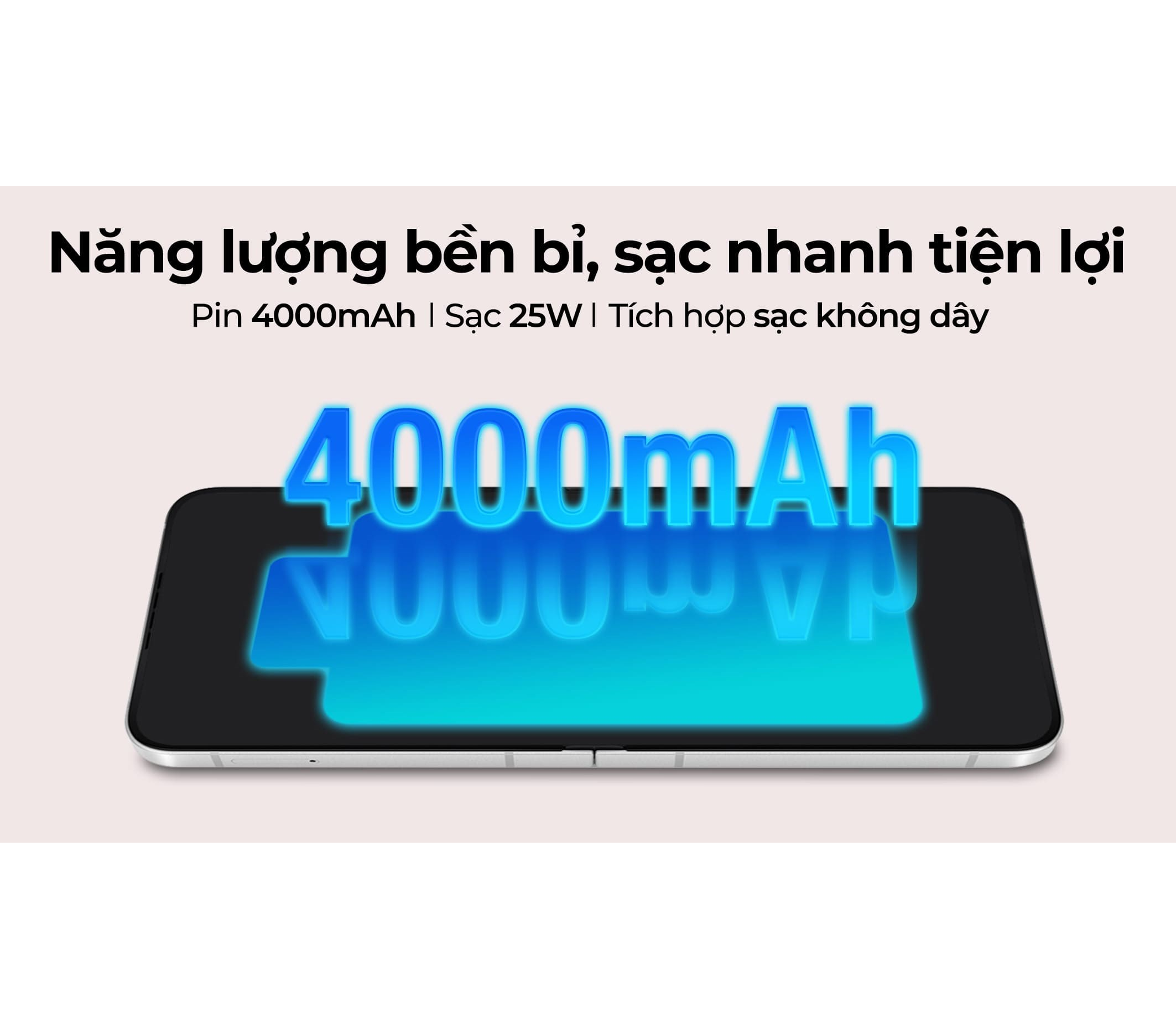 Pin 4000 mAh của Flip 7 FE 128GB cũng đủ để bạn sử dụng suốt một ngày dài, từ sáng đến tối, từ công việc đến giải trí. Bạn có thể xem video, lướt mạng xã hội, trò chuyện với bạn bè mà không lo máy hết pin giữa chừng.
