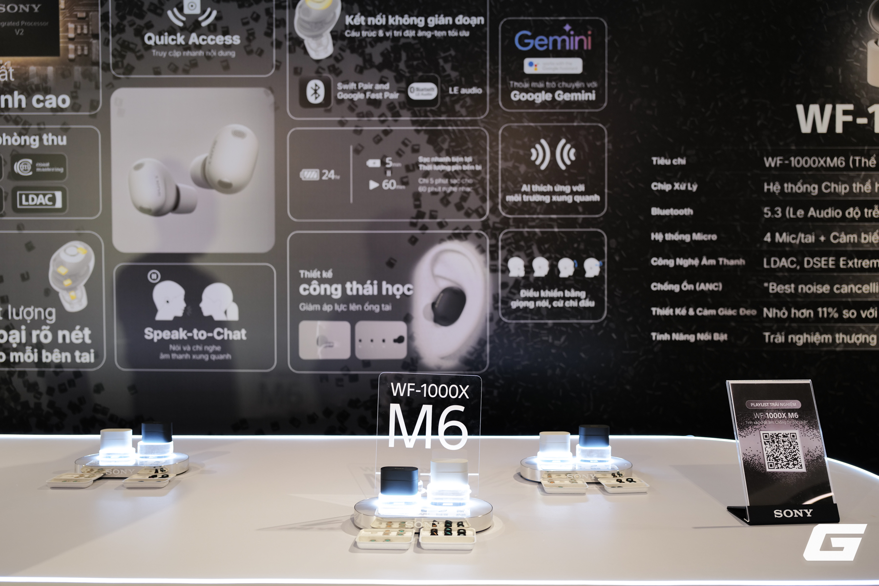 Tai nghe vẫn giữ lại các tính năng quen thuộc như Adaptive Sound Control, Auto Play và Quick Access. Ngoài ra, WF-1000XM6 còn hỗ trợ trợ lý AI Google Gemini, cho phép kích hoạt rảnh tay bằng câu lệnh "Hey Google". Với tính năng Gemini Live, người dùng có thể trò chuyện với trợ lý để lên kế hoạch, tạo danh sách mua sắm hay quản lý lịch trình mà không cần thao tác trực tiếp trên điện thoại.