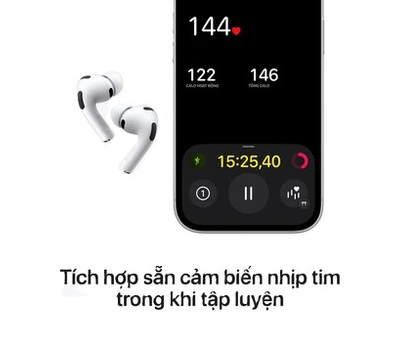 AirPods Pro 3 trang bị cảm biến nhịp tim PPG thế hệ mới (đo 256 lần/giây), kết hợp AI trên iPhone để theo dõi hơn 50 loại bài tập. Ngoài ra, còn có Workout Buddy – huấn luyện viên ảo cá nhân hóa dựa trên dữ liệu sức khỏe và lịch sử tập luyện.