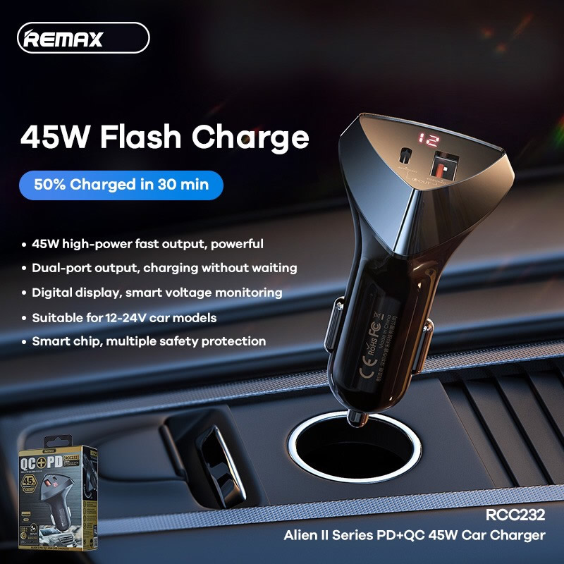 Tẩu sạc oto trang bị 2 cổng sạc: USB và Type C