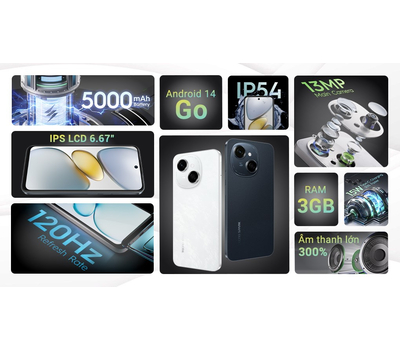 Chiếc điện thoại Tecno này được thiết kế bền bỉ, đạt chuẩn kháng bụi nước IP64 và chịu rơi từ độ cao 1.5m. Máy hoạt động ổn định trong nhiều điều kiện, giảm nguy cơ hỏng hóc và chi phí sửa chữa, đặc biệt phù hợp với người dùng muốn một chiếc điện thoại vừa chắc chắn vừa đáng tin cậy theo thời gian.