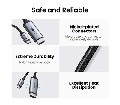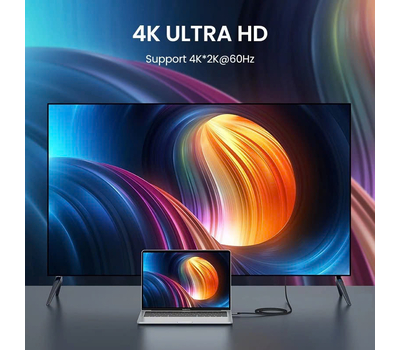 Cáp UGREEN USB-C sang HDMI hỗ trợ độ phân giải lên đến 4K*2K Ultra HD (3840x2160@60Hz)1080P@120Hz Full HD, mang đến hình ảnh siêu nét, lý tưởng cho cả nhu cầu giải trí lẫn trình chiếu chuyên nghiệp trong lớp học hoặc văn phòng.