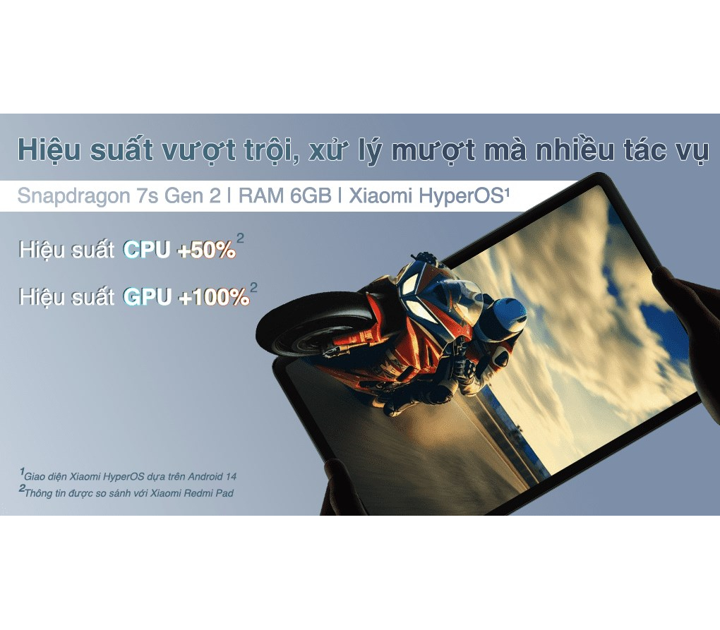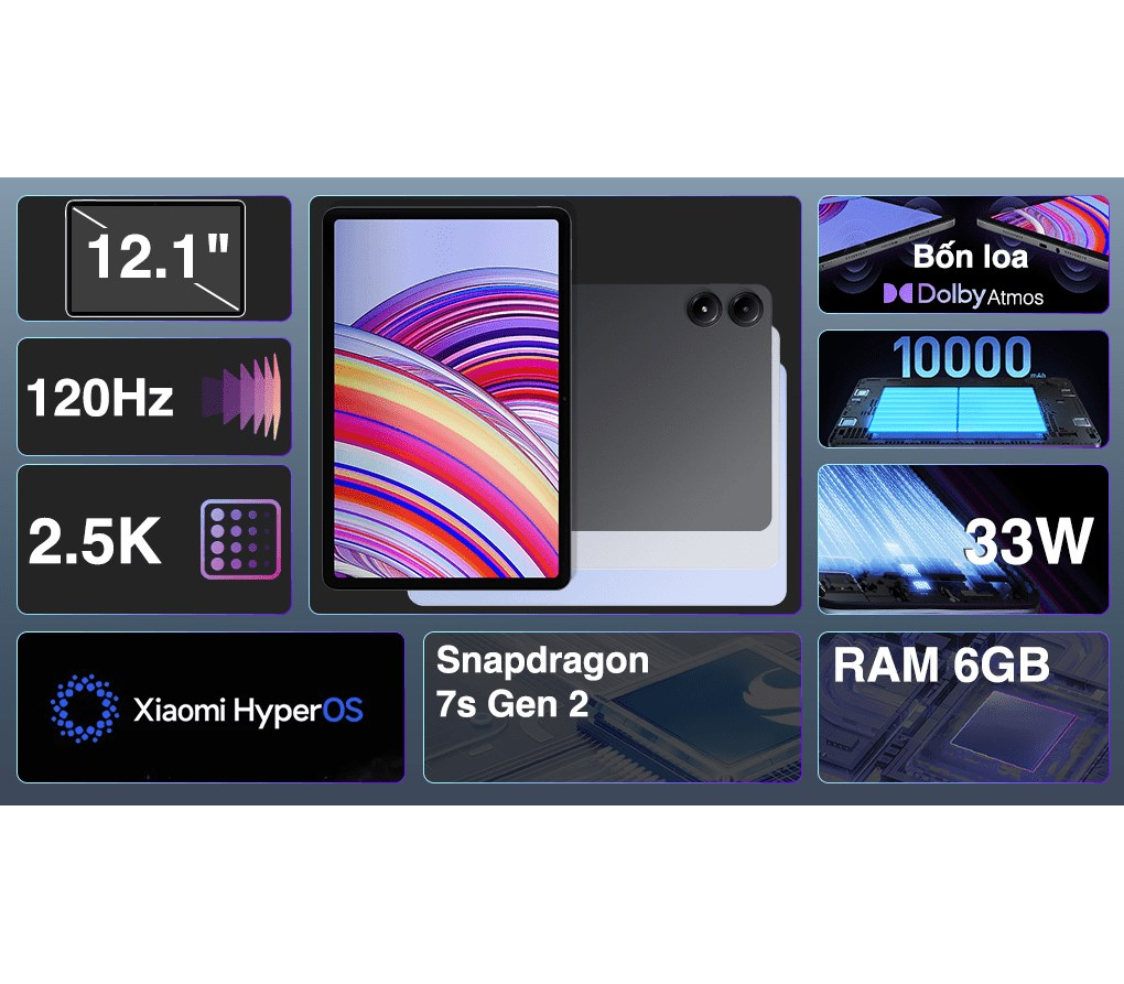 Redmi Pad Pro ghi điểm với màn hình có độ phân giải 2.5K ấn tượng, mang đến hình ảnh sắc nét và chi tiết đến từng điểm ảnh. Tần số quét 120 Hz giúp cho mọi thao tác vuốt chạm trở nên trơn tru, khả năng tái hiện những khung hình tốc độ cao đầy mượt mà, đặc biệt là trong các bộ phim hành động hay game đua xe, bắn súng,...